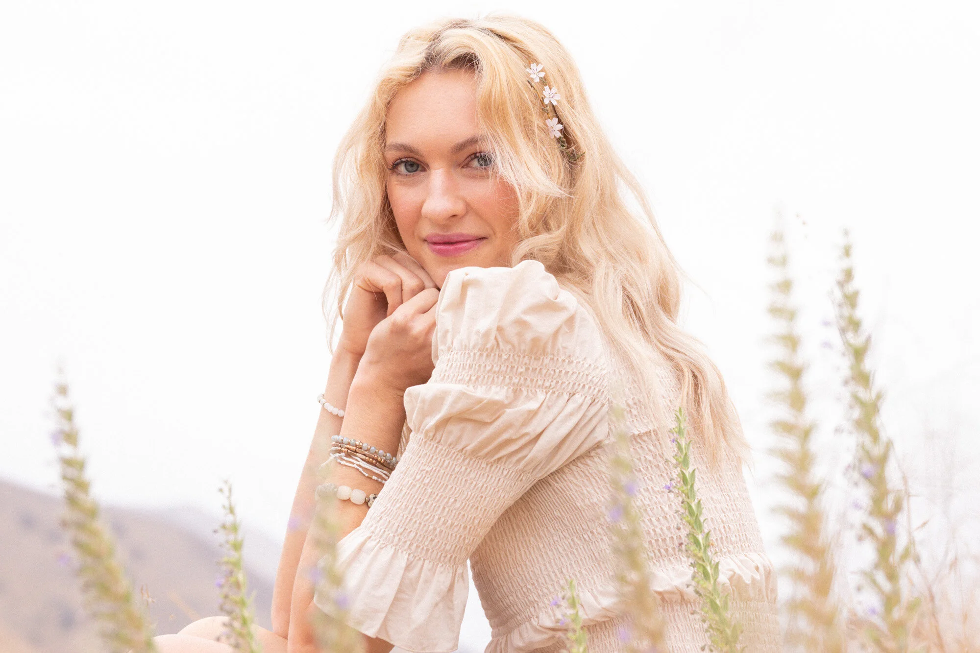 What happens when you bring four creative women together onto a Malibu hillside to photograph as the foggy rose gold sun rises? When the excitement to be back outside, working with fellow artists after feeling cooped up for far too long, over takes. The appreciation for collaboration comes into play and inspiration from outdoor elements that cannot be controlled. Amidst the neutral colour pallet of the sun-crisped greenery; the flowers of imagination begin to bloom.